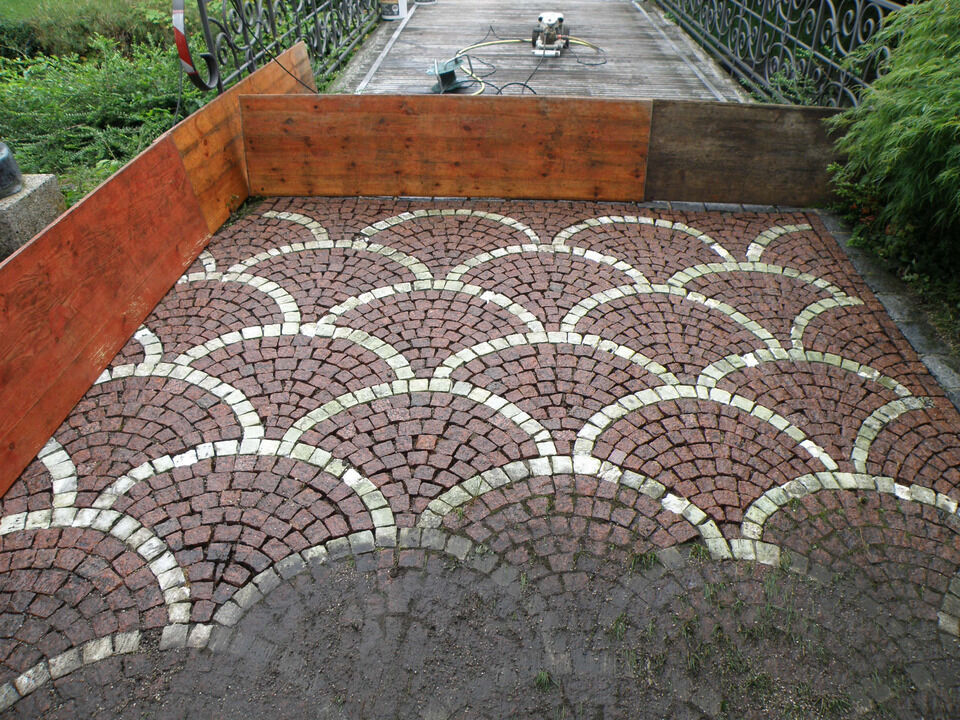Regelmäßige Belagspflege erhält die Optik, verhindert Rutschgefahr und verlängert die Lebensdauer der Flächen. Bei Bedarf prüfen wir Gefälle und Entwässerung, um Staunässe vorzubeugen.