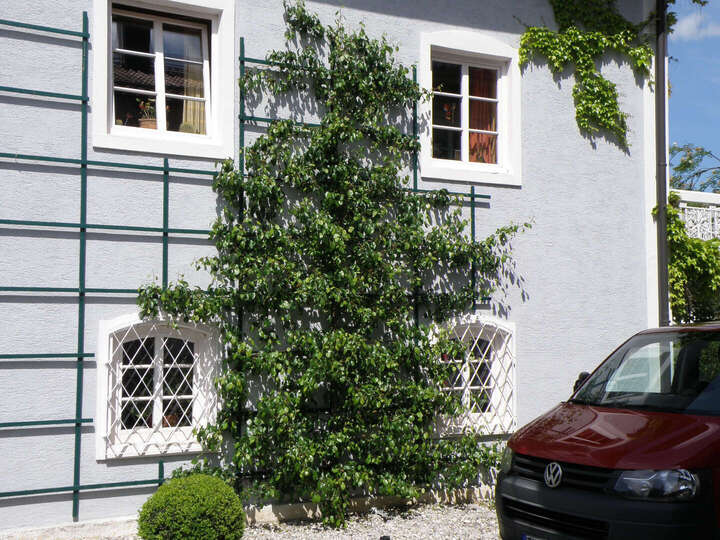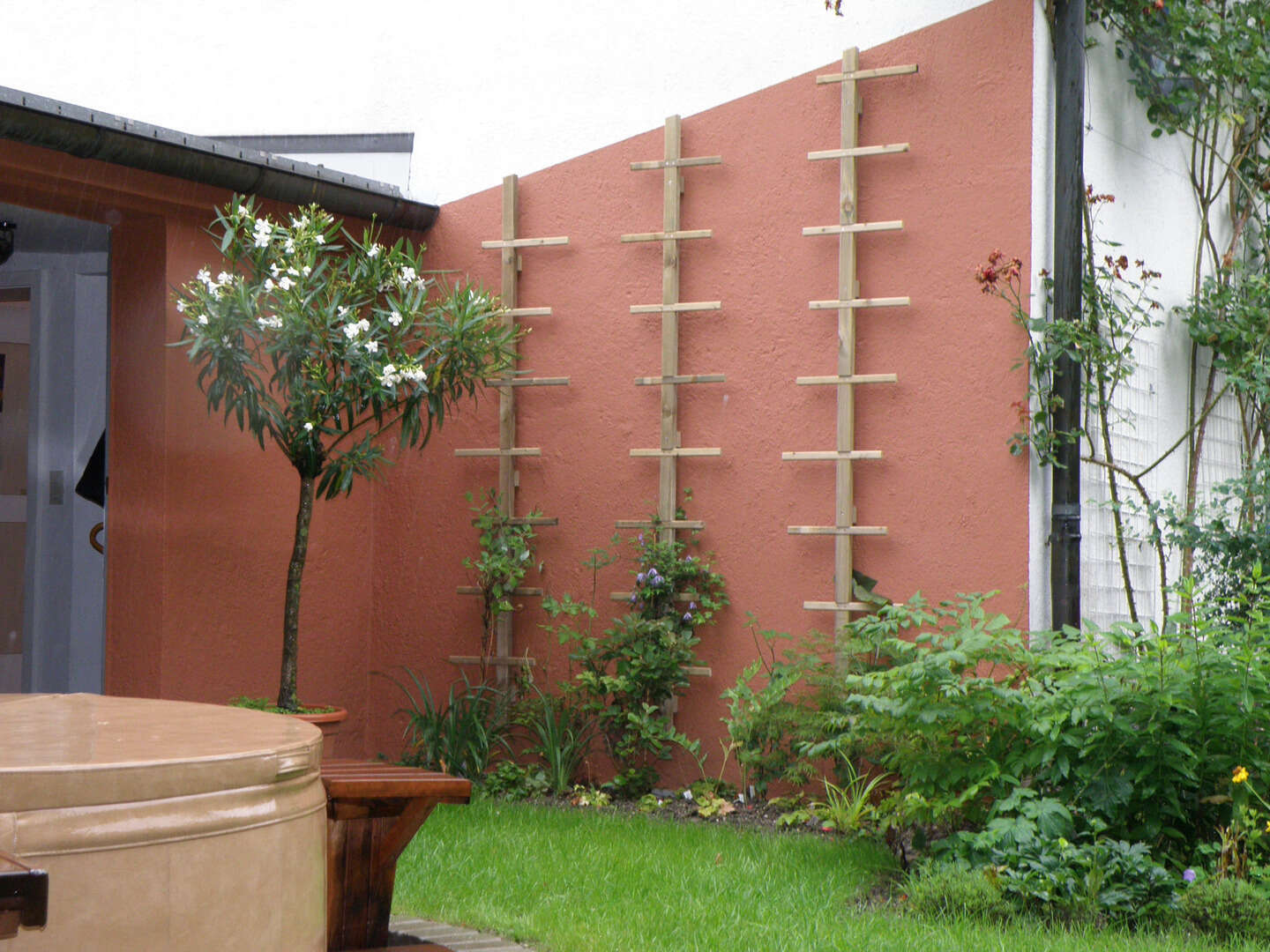 Spaliere und Rankhilfen lenken das Wachstum von Pflanzen und schaffen vertikale Strukturen im Garten. Sie verbinden Architektur und Natur, gliedern Flächen und setzen lebendige Akzente an Mauern, Wegen oder Terrassen.